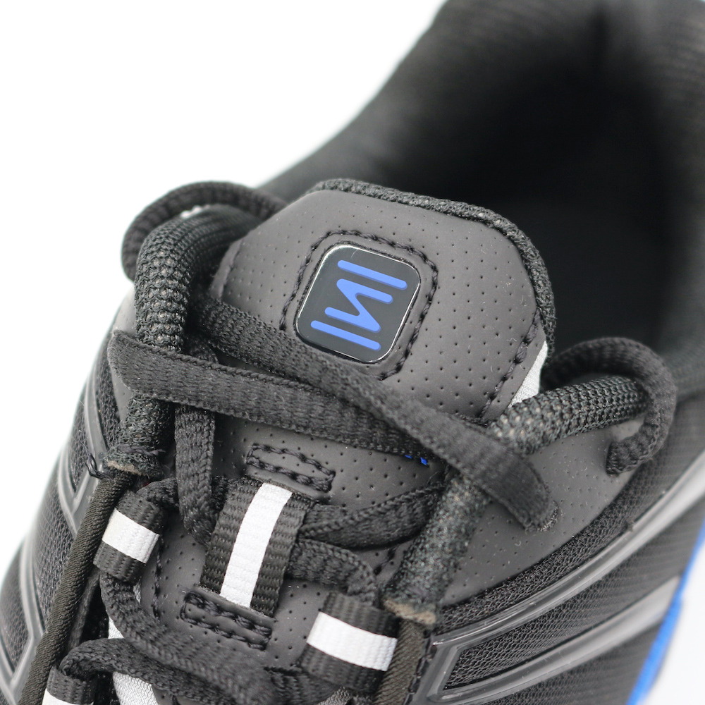 ブラックベースに差し色のブルーが映える一足。